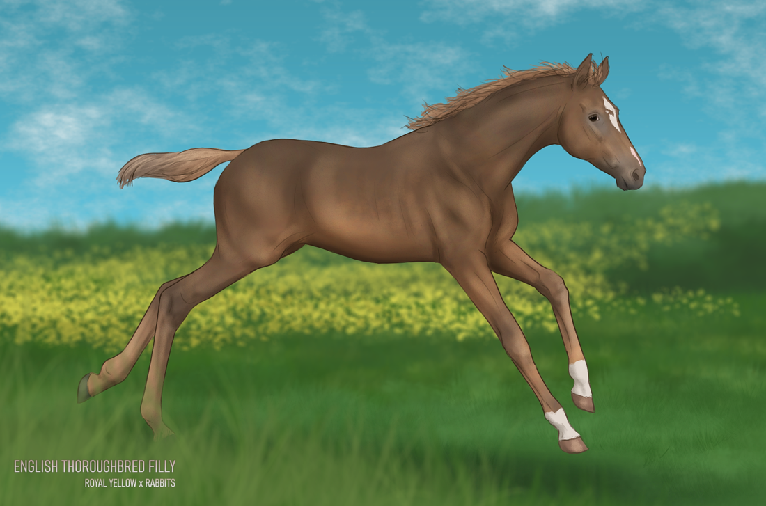 Pizza, Pitsa, Piipaa, Pissa... Tätä pikkutammaa on kutsuttu vaikka ja millä nimillä sen ensimmäisestä elinpäivästään lähtien - virallisen nimensäkin se sai kutsumanimen mukaan! Toki isänsä Royal Yellow oli inspiraationlähteenä siinä mielessä että "Royal Yellow" on keltainen värisävy, niinpä "Pitsa" sai nimekseen Purple Pizzazz (joka on muuten ihanan sävyinen violetti, vaikka noin muuten ei violetti kuulu suosikkeihini).